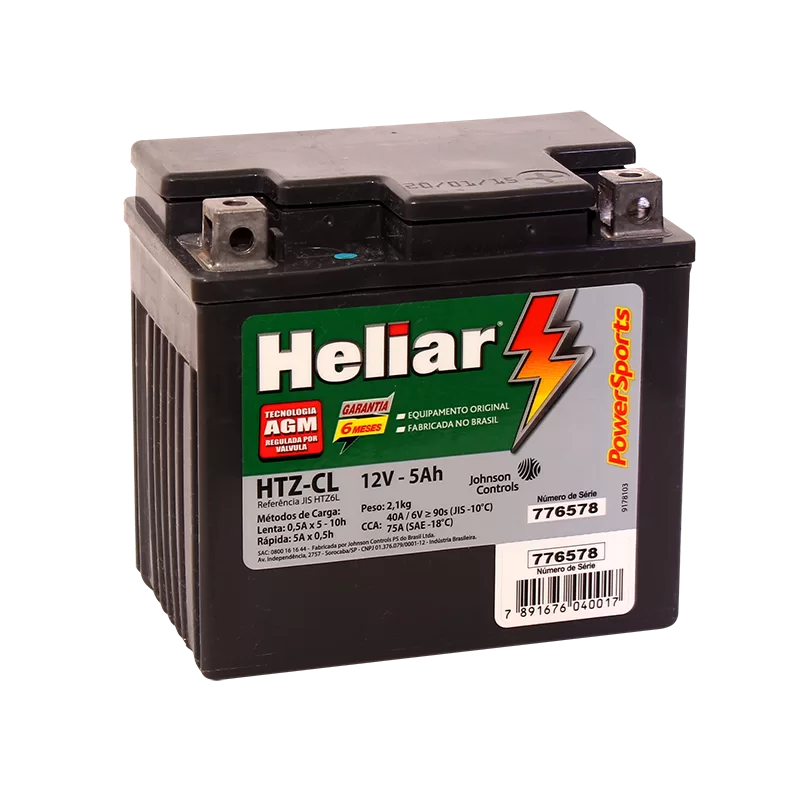 BATERIA HELIAR – MODELO: HTZ6L- 5ah – 12V – C10(ah) 5 CCA (A) 40