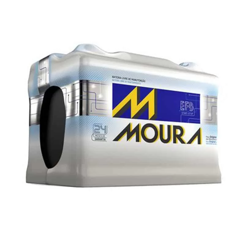 As baterias mais demandadas pelo mercado com até 75Ah, contam com garantia de fábrica Moura de 18 meses. No caso dessa bateria, como possui tecnologia EFB, a garantia é de 24 meses.